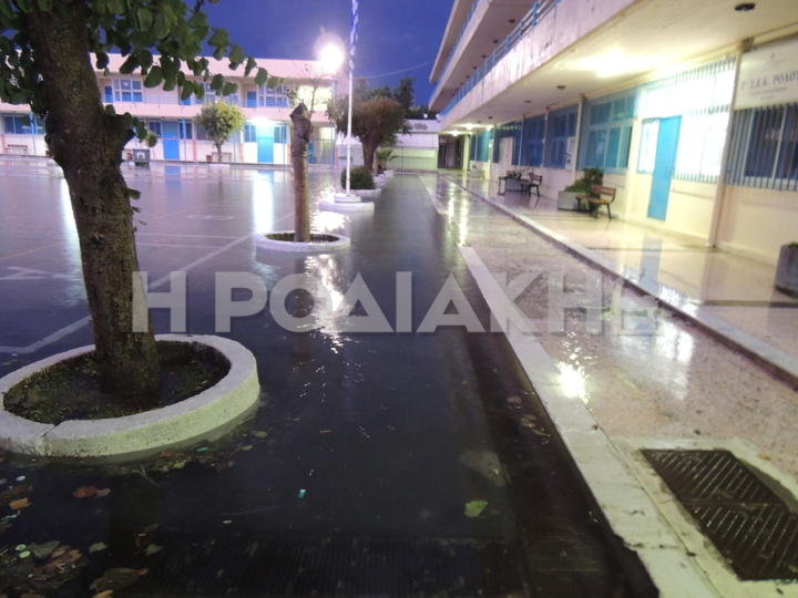Μια απέραντη λίμνη έγινε το Τεχνικό Λύκειο Ρόδου – Δείτε φωτογραφίες