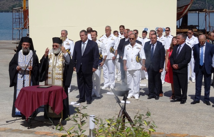 «Σεβασμιότατε, Κύριε Βουλευτά, Κύριε Αρχηγέ του Πολεμικού Ναυτικού, Κύριε Δήμαρχε, Κύριε Αντιπεριφερειάρχα, Κύριε Έπαρχε, Αξιωματικοί, Υπαξιωματικοί και στελέχη των Ενόπλων Δυνάμεων, Κυρίες και κύριοι,