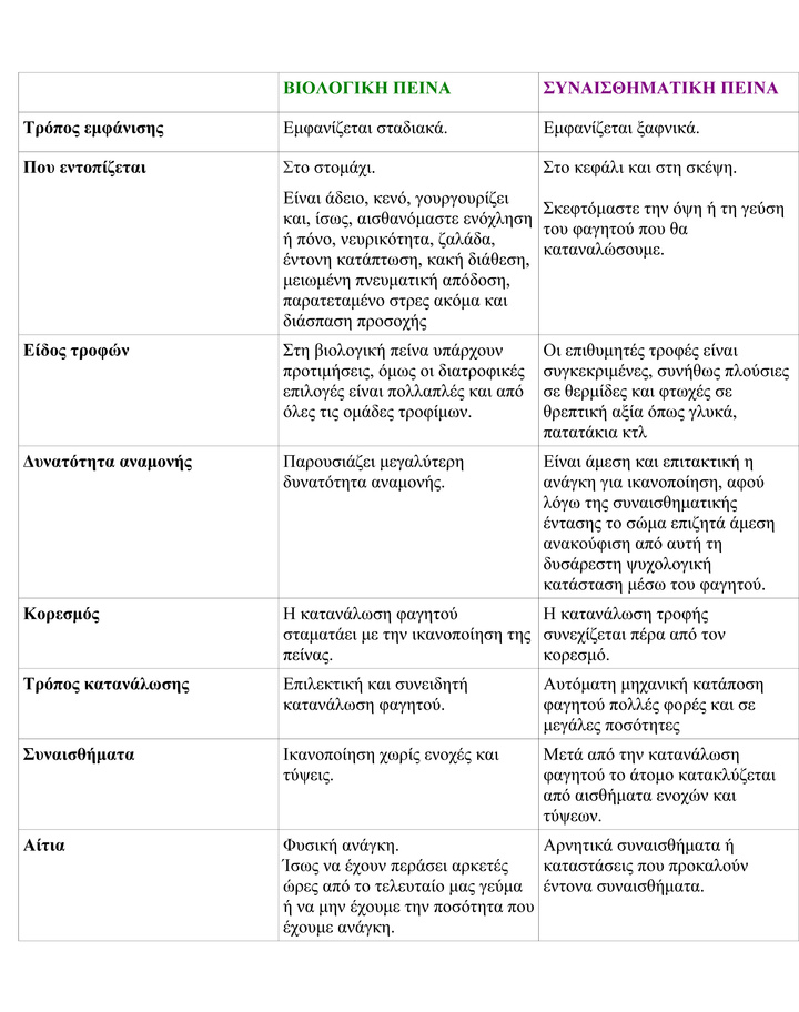 Για να καταλάβουμε εάν πρόκειται για συναισθηματική ή πραγματική/βιολογική πείνα χρειάζεται να κατανοήσουμε τις διαφορές τους και φυσικά να παρατηρήσουμε τον εαυτό μας, ειδικά την ώρα του φαγητού.