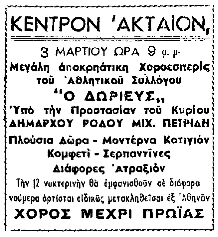 Ως ανεκοινώθη εκ της Ι. Μητροπόλεως από του Β’ δεκαημέρου τρέχοντος μηνός θα αρχίσουν αναμεταδιδόμεναι παρά του Ραδιοφωνικού Σταθμού Ρόδου, αι θείαι λειτουργίαι διαφόρων ναών της πόλεως.