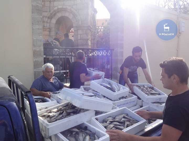 Σήμερα Κυριακή των Βαϊων 24/4/16 μετά την θεία λειτουργία στον Άγιο Παντελεήμονα όπως κάθε χρόνο έτσι και εφέτος ο καπετάν Τσετιν Καραοσμαν πήγε για ψάρεμα εχθες και έπιασε 500 κιλά διάφορα ψάρια και τα έφερε σήμερα το πρωί στην εκκλησία όπου μετά το τέλος της θείας λειτουργίας τα μοίρασαμε μαζί με τα 500 καρβέλια ψωμί που πρόσφερε ο φούρνος του κ.Εμμανουηλ Βαρελη.