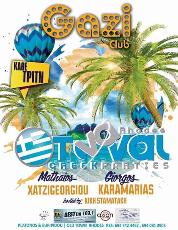 Τα «Ό,τι να ‘ναι Greek Parties» συνεχίζουν δυναμικά να «απογειώνουν» τις Τρίτες στο Gazi Club. Το ανανεωμένο και νούμερο ένα ελληνικό μαγαζί της Παλιάς Πόλης, φιλοξενεί κάθε Τρίτη το καλύτερο ελληνικό πάρτι του νησιού.