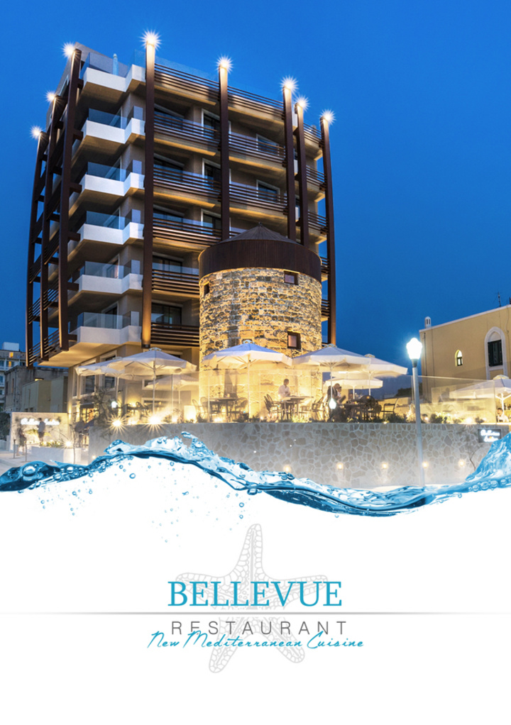 Από τις γευστικές προτάσεις του Bellevue Restaurant ξεχωρίζουν μεταξύ άλλων: το σπιτικό νιόκι πατάτας με φρέσκα μανιτάρια, Κώτικο ντοματάκι , και κρέμα φασκόμηλου , το φιλέτο από φρέσκο λαβράκι σχάρας με κρούστα από φιστίκι πάνω σε άγρια χόρτα αρωματισμένα με αγουρέλαιο και γλυκολέμονο και η πανακότα από γιαούρτι με αρωματική μαστίχα και φράουλες.