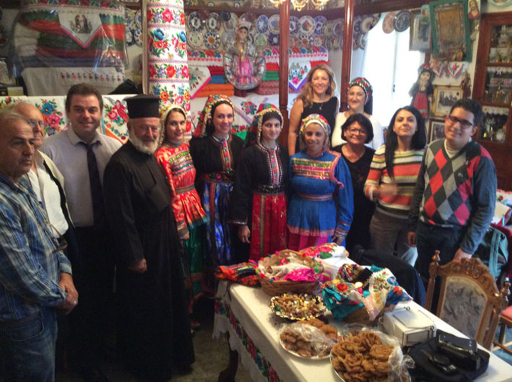 Μας προσέφερε βιβλία με το σημαντικό ιστορικό της εκκλησίας αυτής, και ακολούθως δοκιμάσαμε παραδοσιακά κεράσματα στο Γραφείο της Εκκλησίας. Στη συνέχεια, η ομάδα των φοιτητών, με τη συνοδεία της διδάσκουσας Νάντιας Μαχά-Μπιζούμη, επισκέφτηκαν το σπίτι του Πρωτοπρεσβύτερου Παπα-Γιάννη Διακογεωργίου, όπου και έγινε μάθημα εφαρμοσμένης Λαογραφίας.