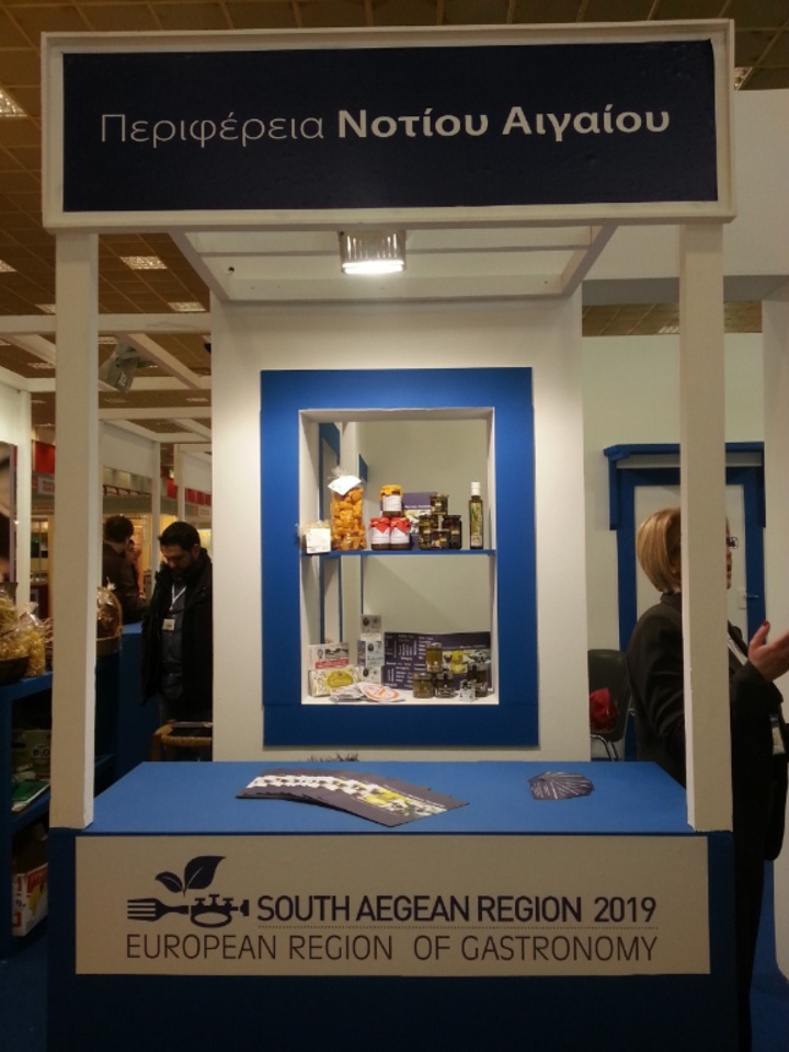 Σε μια προσπάθεια ενίσχυσης της εξωστρέφειας της, αλλά και με στόχο την αποτελεσματική προβολή και προώθηση των τοπικών προϊόντων της, τόσο στην Ελλάδα όσο και στο εξωτερικό, η Περιφέρεια συμμετείχε με έντεκα περίπτερα, που φιλοξένησαν τους παραγωγούς και τα ντόπια παραδοσιακά προϊόντα από τα νησιά της Ρόδου, της Σαντορίνης, της Σύρου, της Τήνου, της Νάξου και της Αστυπάλαιας.