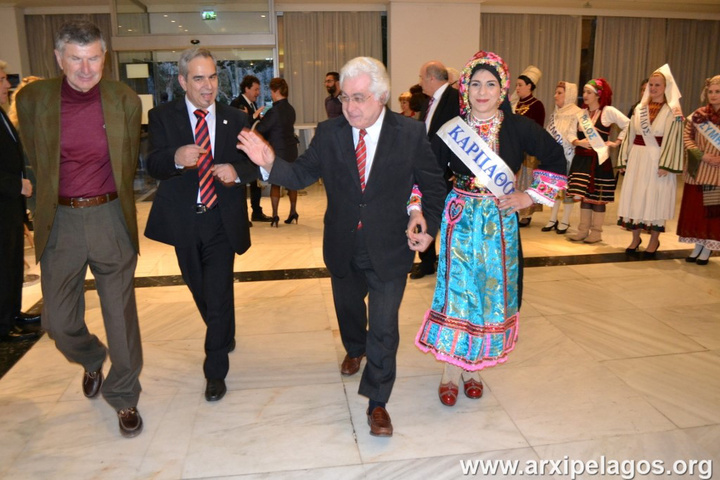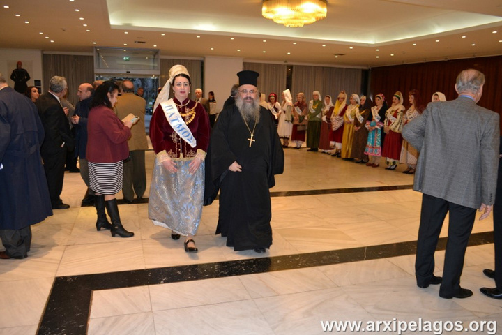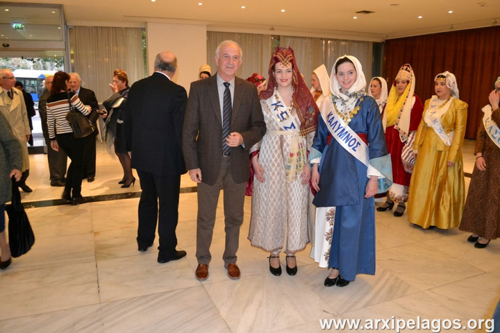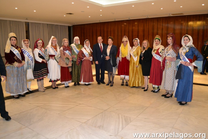 Στον επιβλητικό χώρο του αμφιθεάτρου του Πολεμικού Μουσείου, οι προσκεκλημένοι γίνονταν δεκτοί από δεκατέσσερεις νέες με παραδοσιακές φορεσιές των Δωδεκανήσων και ακούσματα γνωστών συνθετών από τη Μουσική του Πολεμικού Ναυτικού.