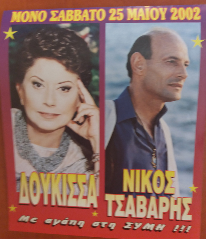 Ήταν Συμιακιά. Πήγα στο καμαρίνι της και της λέω: «γεια σου, Δικκισί Φωτάρα»! Μου λέει, «εσύ από ποιόν άνεμο ήρθες;» Της λέω, «της Σύμης». Μου λέει, «θα είσαι κοντά μου, εγώ έκανα το Βοσκόπουλο και θ’ αδιαφορήσω για έναν Συμιακό, συμπατριώτη μου;» Ιστορίες…, πρέπει να γράψω βιβλίο! Και με την Ελένη Ροδά δούλεψα και με την Ελένη Φιλίνη και είναι μέχρι σήμερα φίλες μου. Μ΄ έβγαλε η Δούκισσα στη χοροεσπερίδα των καρδιολόγων, που έγινε στο Ledra Marriot και τραγουδούσαν μεγάλα ονόματα. Ο κονφερασιέ, ο Σταύρος Ντάφλος του Αντέννα όταν με παρουσίασε είπε «μια φωνή από την Αυστραλία». Λέω «Δούκισσα, τι είναι αυτά που λέει γιατί με ρίχνει έτσι;»… Μου λέει, «κάνε μου τη χάρη και βγες. Είπα τα «Λαδάδικα». Μου παίρνει το μικρόφωνο ο Ντάφλος και λέει «συγνώμη, αλλά δεν περίμενα ν’ ακούσω τέτοια φωνή από Αυστραλία»…