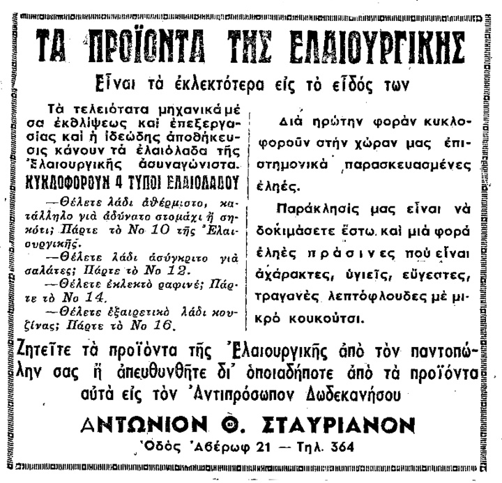 Δι’ εγγράφου της η Εποπτεία Εμπορίου Νομού Δωδεκανήσου υπογραφομένου παρά του κ. Νομάρχου, και αποσταλέντος προς την Διεύθυνσιν Εξαγωγών του Υπουργείου Εμπορίου, διεβίβασεν αντίγραφα ολοκλήρου της αλληλογραφίας, της αφορώσης τας εξαγωγάς οίνων παραγωγής της Συνεταιριστικής Εταιρείας της Ρόδου «Καΐρ» εις Γαλλίαν.