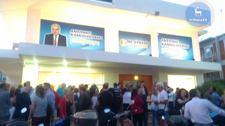 Ξεκίνησαν οι πανηγυρισμοί στο εκλογικό κέντρο του Αντώνη Καμπουράκη στη Ρόδο