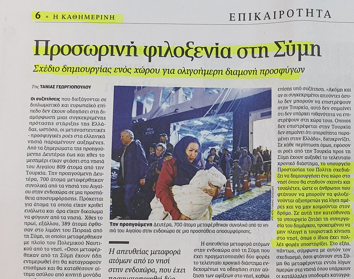 Με το ενδεχόμενο δημιουργίας hot spot στη Σύμη, δεν ασχολήθηκε χθες μόνο η «Ροδιακή», αλλά και η «Καθημερινή», καθώς ένα τέτοιο ενδεχόμενο προέκυψε μέσα από το ρεπορτάζ και κυρίως από την ανακοίνωση του αντιδημάρχου του νησιού κ. Νικήτα Γρύλλη.