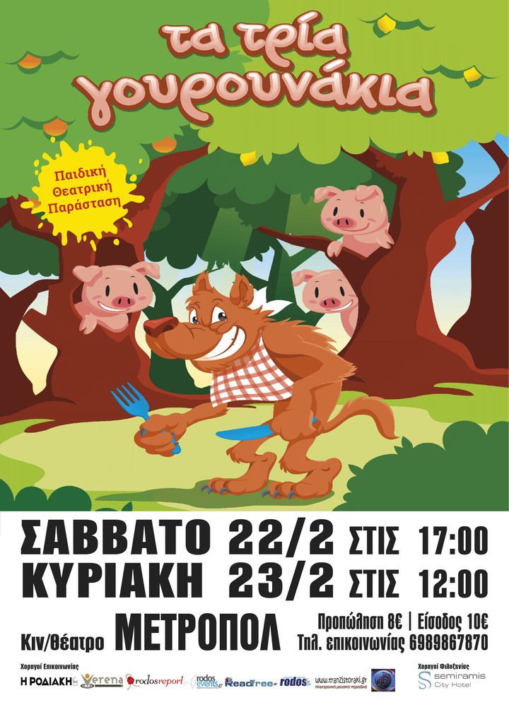 «Τα τρία γουρουνάκια»: Η πιο διαδραστική παιδική παράσταση έρχεται στη Ρόδο!