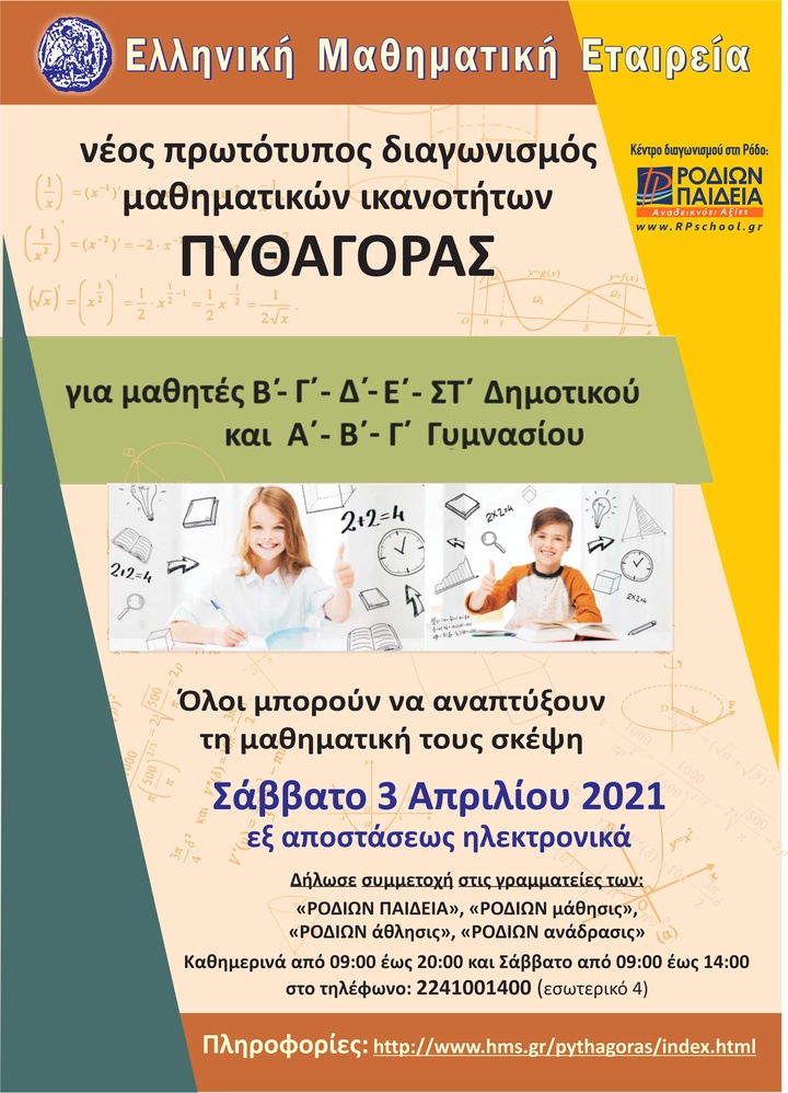 Πώς θα γίνει ο διαγωνισμός «Πυθαγόρας» στο «Ροδίων Παιδεία»