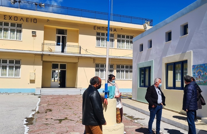 Τηρώντας το σύνολο των μέτρων προστασίας που προβλέπει η Νομοθεσία ενάντια στον Covid-19, η Δημοτική Αρχή του Αντώνη Β. Καμπουράκη και οι Αντιδήμαρχοι Πολιτιστικών Μνημείων και Υπηρεσίας Δόμησης Δρ. Στέφανος Ι. Δράκος και Πολιτικής Προστασίας, Επιχειρησιακής Ετοιμότητας, Ατταβύρου και Καμείρου Νεκτάριος Φλοσκάκης, επισκέφθηκαν το Δημοτικό Σχολείο Έμπωνα, προκειμένου να εκτιμήσουν και να αξιολογήσουν τις σχετικές ανάγκες.