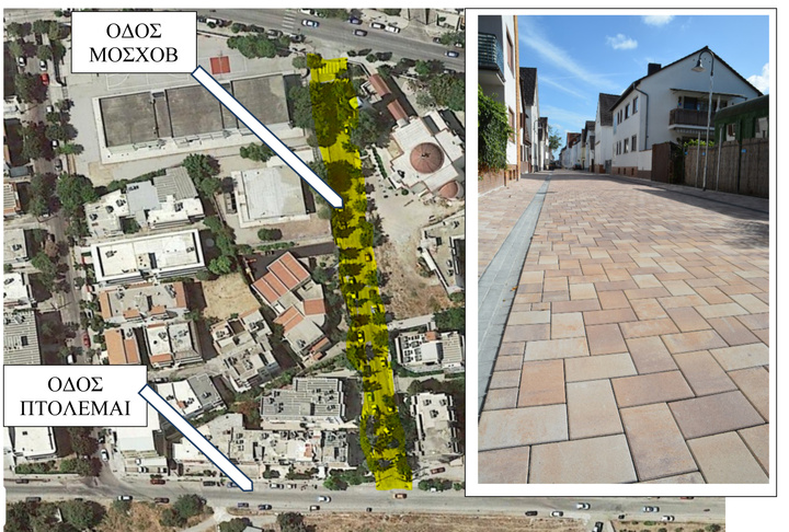 Θα θέλαμε να δούμε την οδό Ανδρέα Μοσκόβη, για παράδειγμα, πεζόδρομο με μια μορφή, χωρίς πεζοδρόμια, στρωμένη με κυβόλιθους, με μία ή δύο κοιλότητες απορροής όμβριων, που να ξεκινά από την Αθηνών μέσω Λαμίας και συνεχίζει μετά την Πτολεμαίων μέχρι τον πεζόδρομο από Αισχίνης στα Πευκάκια.