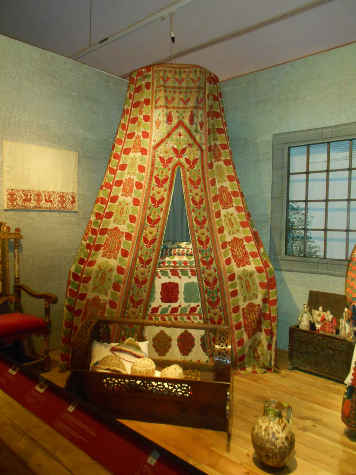 Το ροδίτικο σπερβέρι που εκτίθεται αποτελεί κληροδότημα της κατοχής του νησιού από τους Ιωαννίτες Ιππότες τον 14ο και 15ο αιώνα. Το σπερβέρι κρεμιέται από ένα ξυλόγλυπτο δίσκο και περικλείει το κρεβάτι, αφήνοντας στο μπροστινό μέρος ένα άνοιγμα.