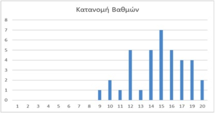 Παρακάτω παρατίθεται η κατανομή των βαθμών.