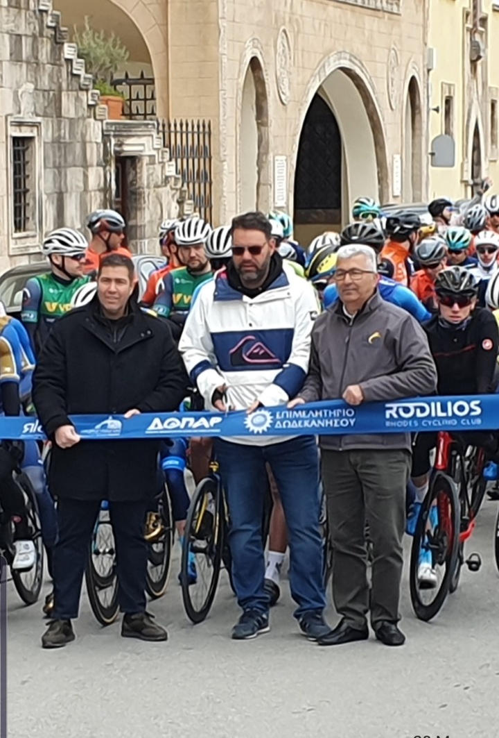 Tην κορδέλα της εκκίνησης έκοψε ο πρόεδρος του Δημοτικού Οργανισμού Πολιτισμού Αθλητισμού Δήμου Ρόδου κ. Αλέξανδρος Κολιάδης. Μαζί του ήταν, ο Αντιπεριφερειάρχης Νοτίου Αιγαίου κ. Νίκος Νικολής και ο πρόεδρος του διοργανωτή Ποδηλατικού Ομίλου Ρόδου «Ροδήλιος» κ. Γιάννης Παπασταματάκης.