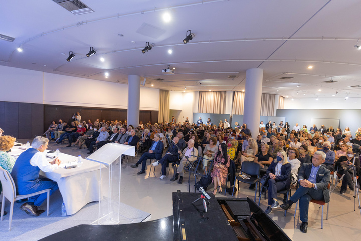 Η αίθουσα της Νέας Πτέρυγας του Νεστορίδειου Μελάθρου γέμισε ασφυκτικά από φίλους του ποιητή και της γραφής του και παρακολούθησαν μια ξεχωριστή εκδήλωση που κράτησε αμείωτη την προσοχή του κοινού τόσο με τις ενδιαφέρουσες ομιλίες, όσο και με τις εξαιρετικές καλλιτεχνικές παρεμβάσεις που πλαισίωσαν τη βραδιά με εκφραστικότητα και συναισθήματα.