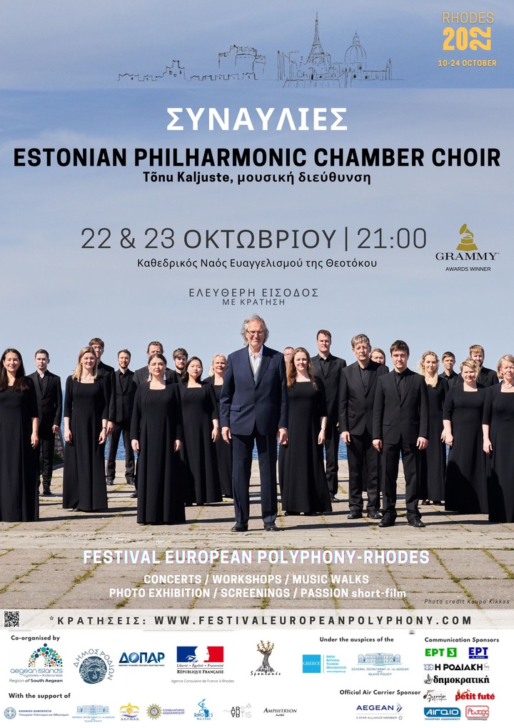 Μη χάσετε τις δύο προγραμματισμένες συναυλίες με την Estonian Philharmonic Chamber Choir, κατόχων δυο Grammy Awards υπο την διεύθυνση του αρχιμουσικού και ιδρυτή της χορωδίας Tonu Kaljuste.