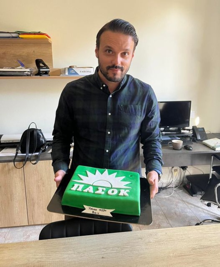 Με... τούρτα ΠΑΣΟΚ γιόρτασε τα γενέθλιά του ο Βάιος Καλοπήτας