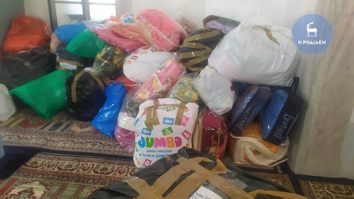 Είναι τόσο συγκινητική η ανταπόκριση των συμπατριωτών μας, καθώς όπως είπε ο πρόεδρος του οργανισμού, ιδιοκτήτης βιοτεχνίας ρούχων από το νησί μας εξέφρασε το ενδιαφέρον να ράψει αν υπάρχει περιθώριο λίγων ημερών 1000 παιδικά σετ με μπλούζα και φόρμα φούτερ. Επίσης, βιοτεχνία παπουτσιών της Ρόδου που έκλεισε, έφερε χτες στο τέμενος ένα ολόκληρο φορτηγό με παπούτσια!