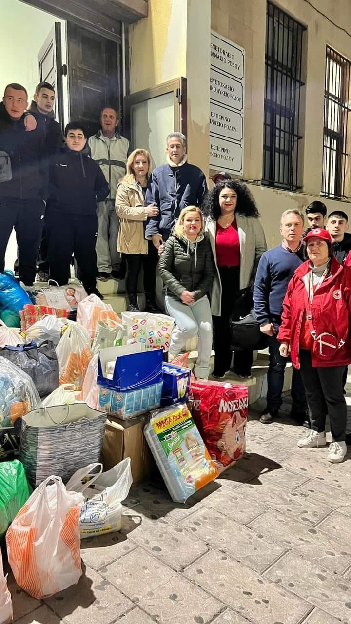 Σε ζηλευτή συνεργασία με τον Ερυθρό Σταυρό και τους εξαιρετικούς Σαμαρείτες, το Εσπερινό Γενικό Λύκειο Ρόδου μαζί με το Εσπερινό Γυμνάσιο Ρόδου συγκέντρωσαν υλικό για τους σεισμοπαθείς γείτονες.