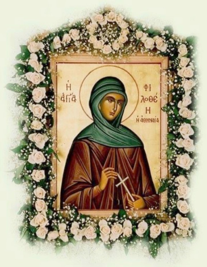 Μετά το πέρας της Θείας Λειτουργίας θα προσφερθεί καφές και γλύκισμα. Η Αγία Φιλοθέη, ήταν μοναχή με σημαντική φιλανθρωπική και κοινωνική δράση κατά τη διάρκεια της Τουρκοκρατίας του 16ου αιώνα.
