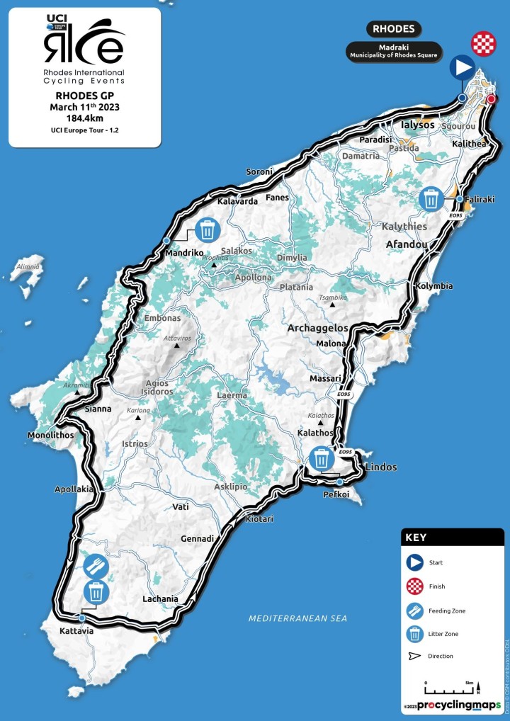 Σύμφωνα με τον προγραμματισμό, η εκκίνηση θα δοθεί στις 12.00 από το Rodos Palace και οι ποδηλάτες θα περάσουν από Ιαλυσό, Παραδείσι, Σορωνή, Καλαβάρδα, Μανδρικό, Μονόλιθο, Απολακκιά, Κατταβιά, Γεννάδι, Κιοτάρι, Πεύκους, Λίνδο, Κάλαθο, Αρχάγγελο, Κολύμπια, Αφάντου, Φαληράκι, Καλλιθέα, με τερματισμό στη Νέα Μαρίνα.