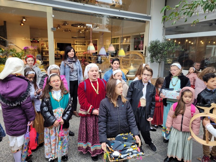 Στο πλαίσιο του εθίμου Τα «χελιδονίσματα», οι μικροί μαθητές ντυμένοι με την παραδοσιακή φορεσιά τραγούδησαν στα καταστήματα κρατώντας τις χελιδόνες αλλά και μοιράζοντας χελιδόνες που έφτιαξαν μόνοι τους.
