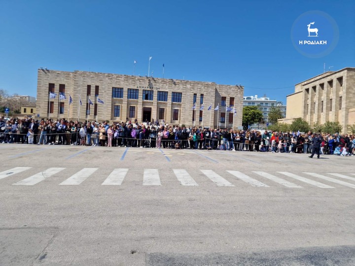 Δεκάδες πολίτες και εκπρόσωποι κομμάτων, φορέων και αρχών του τόπου μας έχουν συγκεντρωθεί στο κέντρο της Ρόδου, που έχει «ντυθεί» στα γαλανόλευκα, για να παρακολουθήσουν την μαθητική και στρατιωτική παρέλαση στην οποία συμμετέχουν πολιτιστικοί σύλλογοι, σωματεία και σχολεία όλων των βαθμίδων.