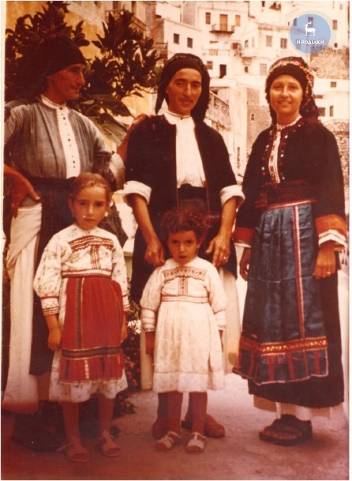 Σας στέλνω και μια φωτογραφία, όπου δεξιά φιγουράρει η γυναίκα μου (Θεοδώρα Κυνηγού) ντυμένη με την παραδοσιακή φορεσιά μαζί με την Ερνία (νομίζω τη μητέρα της) και τα παιδιά της.