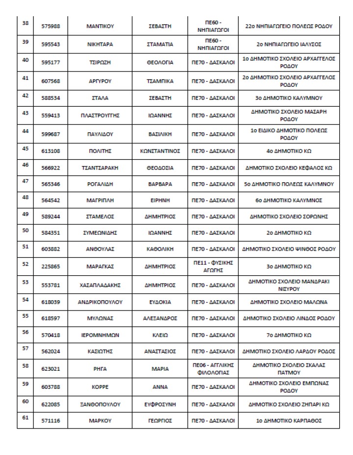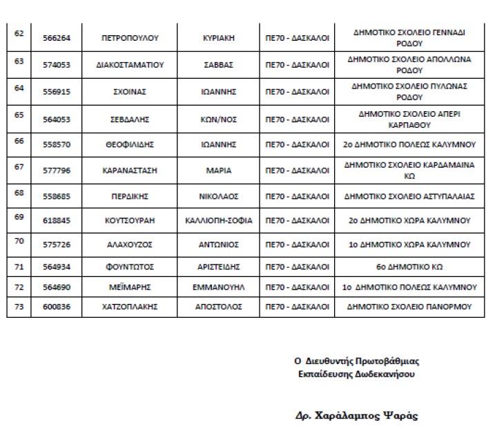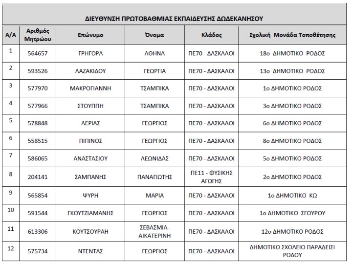 Ανακοινώθηκαν σήμερα, οι νέοι Διευθυντές Σχολικών Μονάδων της Πρωτοβάθμιας Εκπαίδευσης Δωδεκανήσου τοποθετούνται με τετραετή θητεία που λήγει την 31η Ιουλίου 2027 και αναλαμβάνουν υπηρεσία εντός των τριών (3) τελευταίων εργάσιμων ημερών του τρέχοντος διδακτικού έτους, από 19 έως και 21 Ιουνίου 2023!