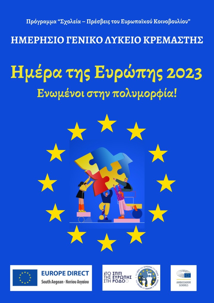 Το ΓΕΛ Κρεμαστής, στο πλαίσιο της υλοποίησης του προγράμματος «Σχολεία-Πρέσβεις του Ευρωπαϊκού Κοινοβουλίου», σάς προσκαλεί σε εκδήλωση για την «Ημέρα της Ευρώπης» την Τετάρτη 03 Μαΐου 2023 και ώρα 11:30πμ.