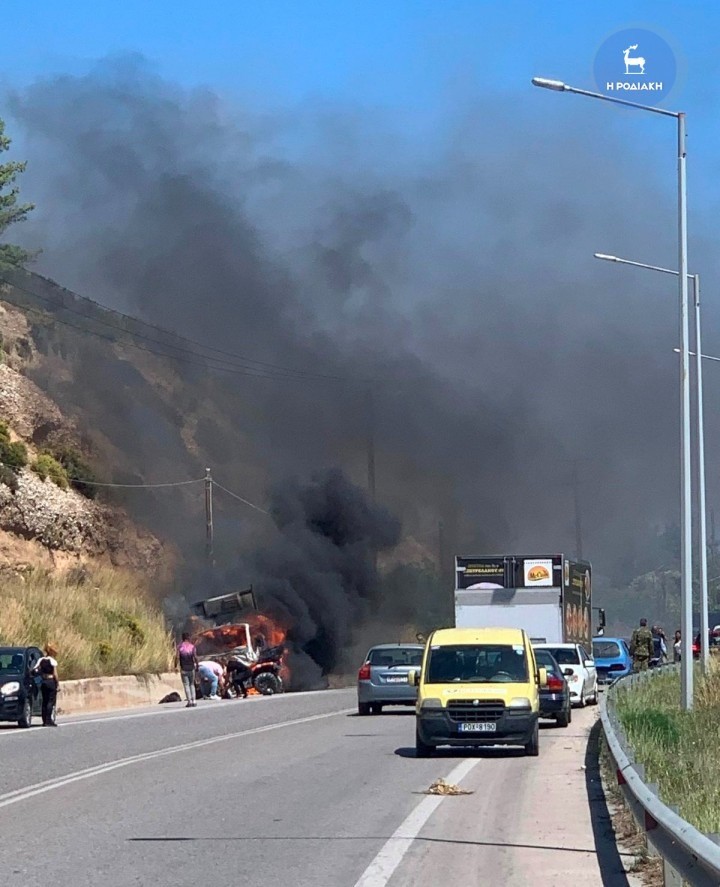 Στο Νοσοκομείο της Ρόδου, απεβίωσε λίγες ώρες αργότερα ο 33χρονος Βέλγος οδηγός του τετράτροχου οχήματος (τύπου γουρούνα) ενώ η 28χρονη σύζυγός του δίνει μάχη προκειμένου να κρατηθεί στη ζωή, καθώς φέρει συντριπτικά κατάγματα σε πολλά σημεία του σώματός της.
