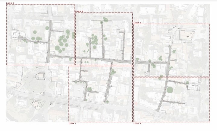 β) πλακόστρωση οδών - εφαρμογή δικτύου πεζόδρομων