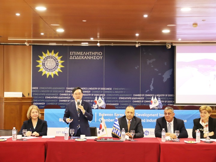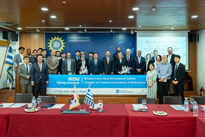 Η επίσκεψη συνεργασίας 15μελούς αντιπροσωπίας του Ινστιτούτου Ανάπτυξης των νησιών της Κορέας KIDI με το Επιμελητήριο Δωδεκανήσου και την Επιστημονική Ομάδα Τουρισμού, 11 Μαίου 2023, στην αίθουσα Γεώργιος Καραγιάννης του Επιμελητηρίου, άνοιξε ευκαιρίες ανταλλαγής τεχνογνωσίας και ερευνητικού έργου στο πλαίσιο της βιώσιμης ανάπτυξης της νησιωτικότητας που αποτελεί το κοινό χαρακτηριστικό των δύο προορισμών.