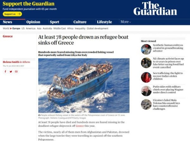 Τον γύρο του κόσμου κάνει η είδηση του τραγικού ναυαγίου στην Πύλο. Μέχρι στιγμής ο αριθμός των νεκρών παραμένει επίσημα στα 79 άτομα αλλά αναμένεται να αυξηθεί δραματικά, καθώς στο πλοίο επέβαιναν έως και 700 άτομα, σύμφωνα με τους ίδιους τους μετανάστες.
