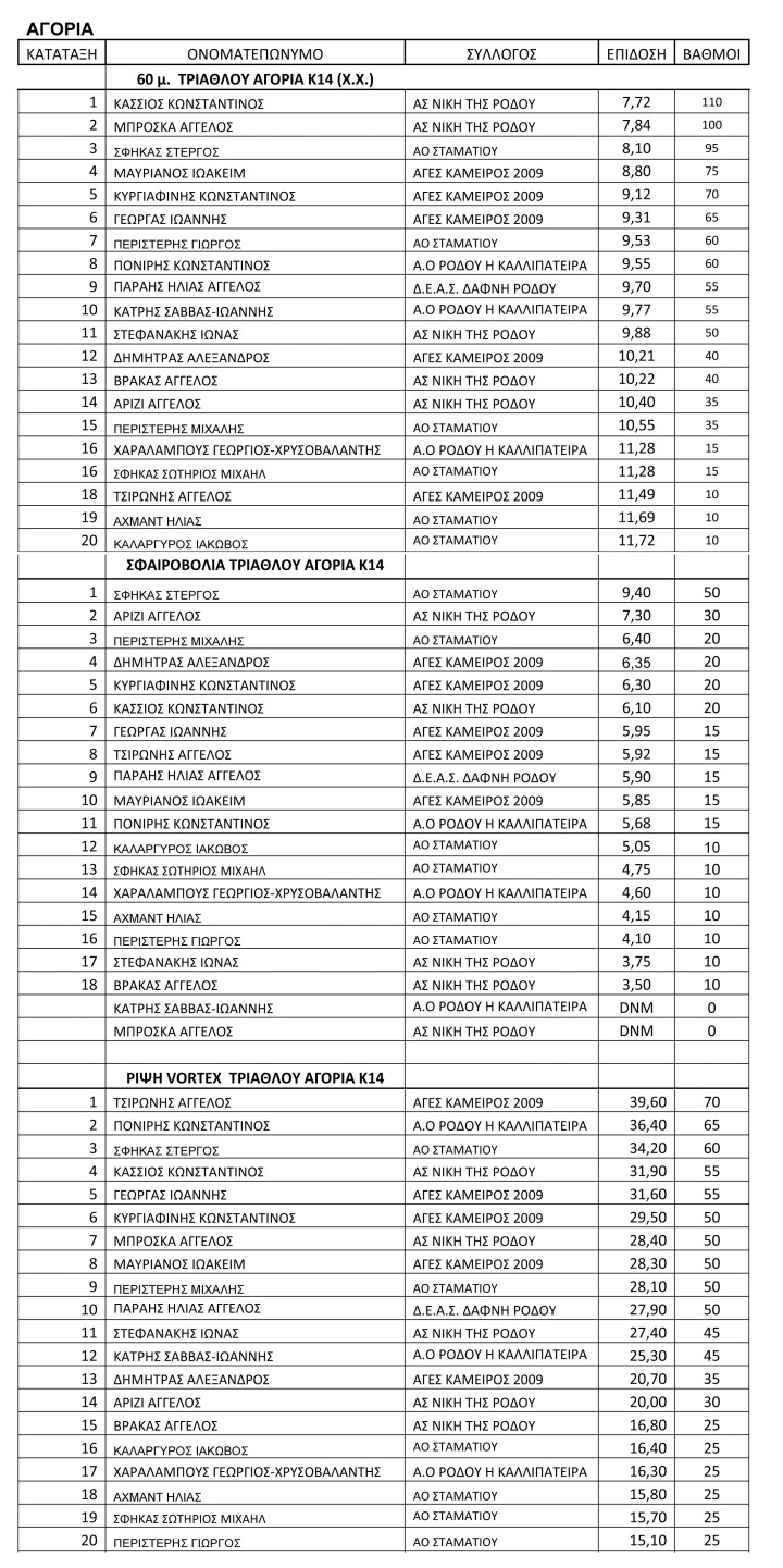 Να σημειώσουμε ότι στον αγώνα ριπτικού, αυτή τη φορά, τριάθλου, έλαβαν μέρος 20 Παμπαίδες και 37 Παγκορασίδες Β’ (Κ14).