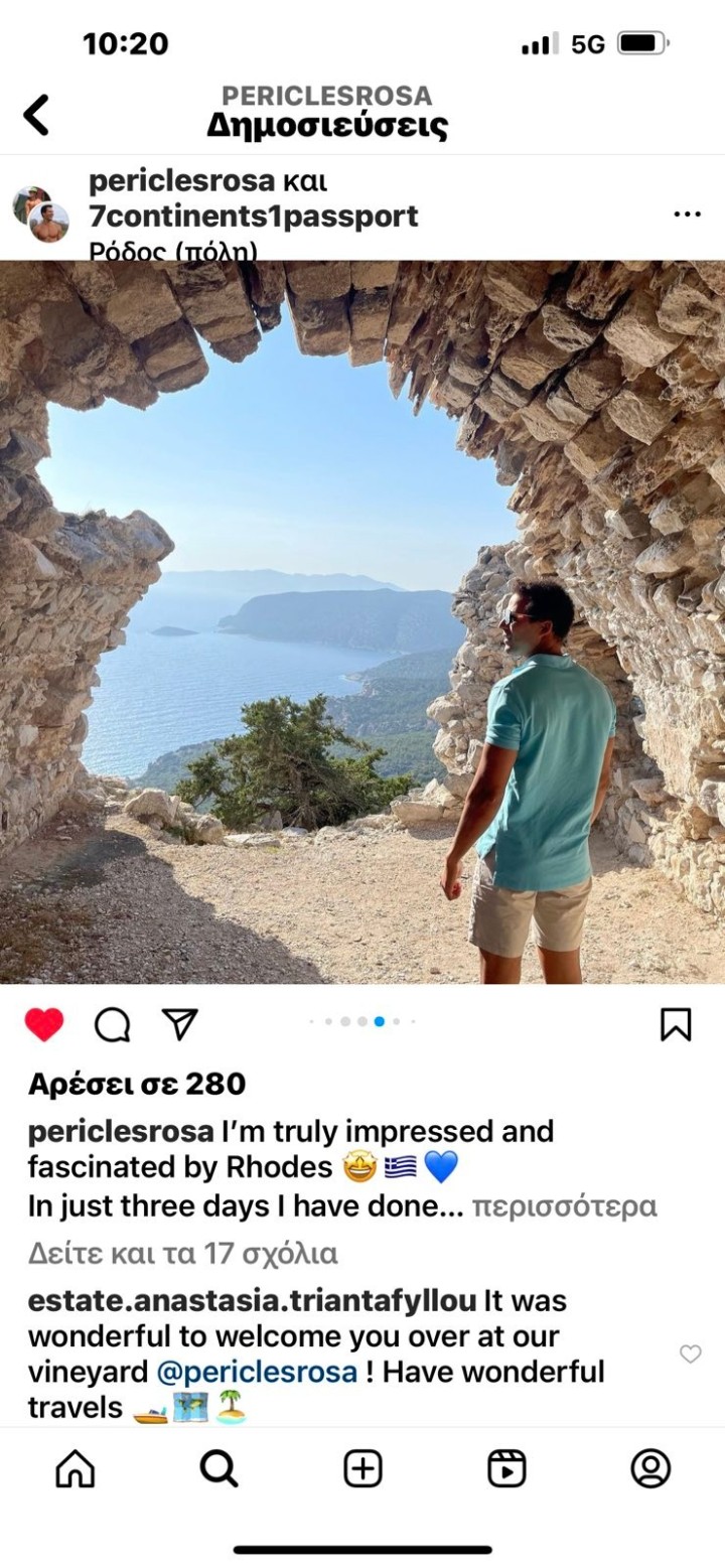 Εντυπωσιασμένος κυριολεκτικά από το μεγαλείο της Ρόδου μετέφερε στα άρθρα του είτε στο site είτε στα social media τις εμπειρίες του από το νησί.