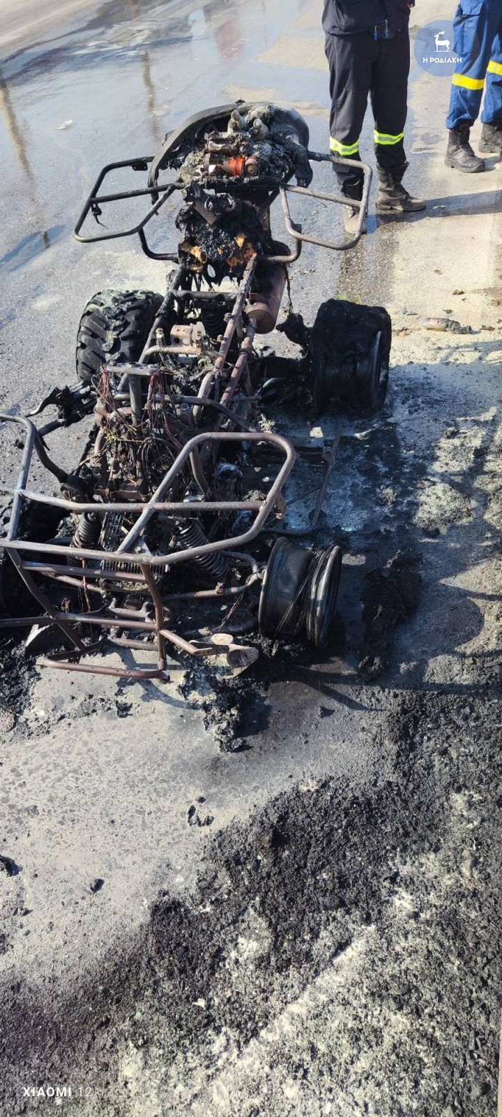Κάρβουνο έγινε ένα τετράτροχο όχημα (γουρούνα) στο Φαληράκι, το οποίο πήρε φωτιά στα ξαφνικά ενώ ήταν ακινητοποιημένο μπροστά σε φανάρι.