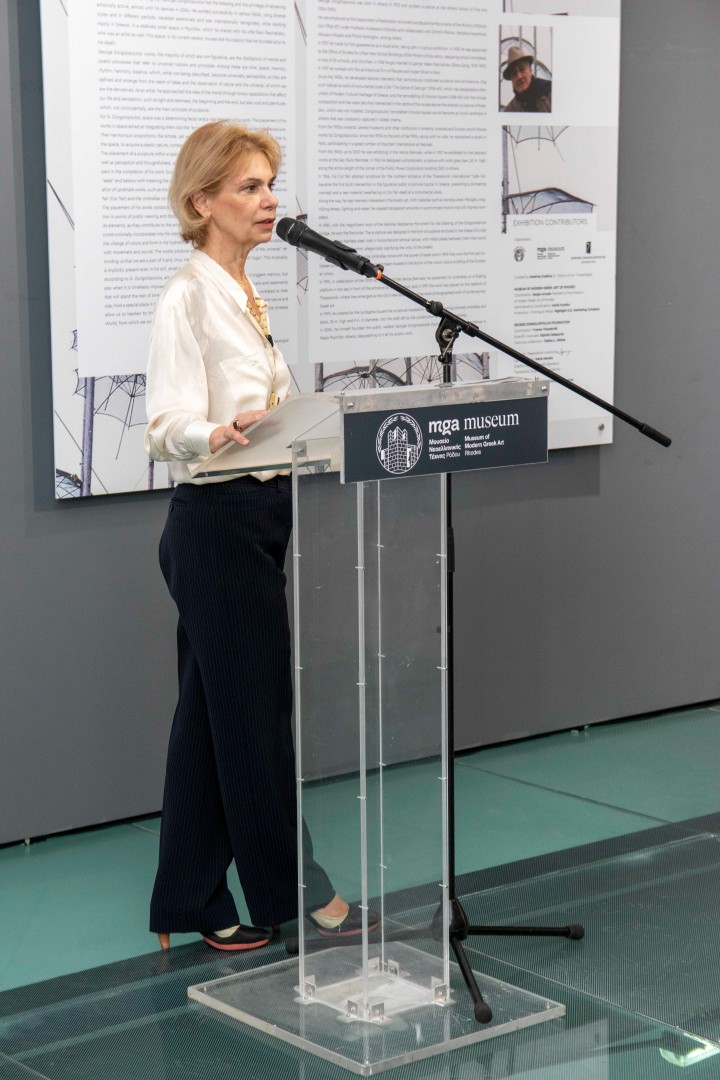 Τον κύκλο ομιλιών ολοκλήρωσε η κα. Κατερίνα Κοσκινά, Δρ. Ιστορίας της Τέχνης - Μουσειολόγος και Πρόεδρος της Καλλιτεχνικής Επιτροπής του Μουσείο Νεοελληνικής Τέχνης Ρόδου η οποία έχει και την επιμέλεια της έκθεσης. Αφού εξήρε το έργο που γίνεται στη Ρόδο και τις προοπτικές του Μουσείου, αναφέρθηκε στην επιλογή των έργων που παρουσιάζονται στην έκθεση τα οποία εκπροσωπούν διαφορετικές εποχές που αποκαλύπτουν μέσα από διαφορετικές προσεγγίσεις τη συνοχή που διέπει την έρευνα και το έργο του Γιώργου Ζογγολόπουλου.