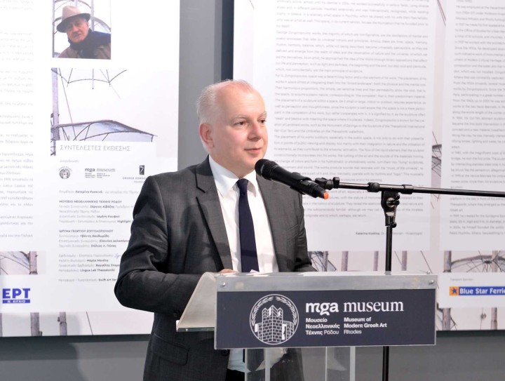 Κατόπιν, ο Πρόεδρος του Μουσείου κάλεσε το Δήμαρχο Ρόδου κ. Αντώνη Β. Καμπουράκη για κηρύξει επίσημα την έναρξη της έκθεσης. Ο Δήμαρχος Ρόδου δήλωσε εντυπωσιασμένος από την έκθεση και προσκάλεσε όλους τους Ροδίτες και τους επισκέπτες του νησιού να μην χάσουν την ευκαιρία να δουν τα έργα του Γιώργου Ζογγολόπουλου από κοντά καθώς ταξιδεύουν για πρώτη φορά στη Ρόδο.