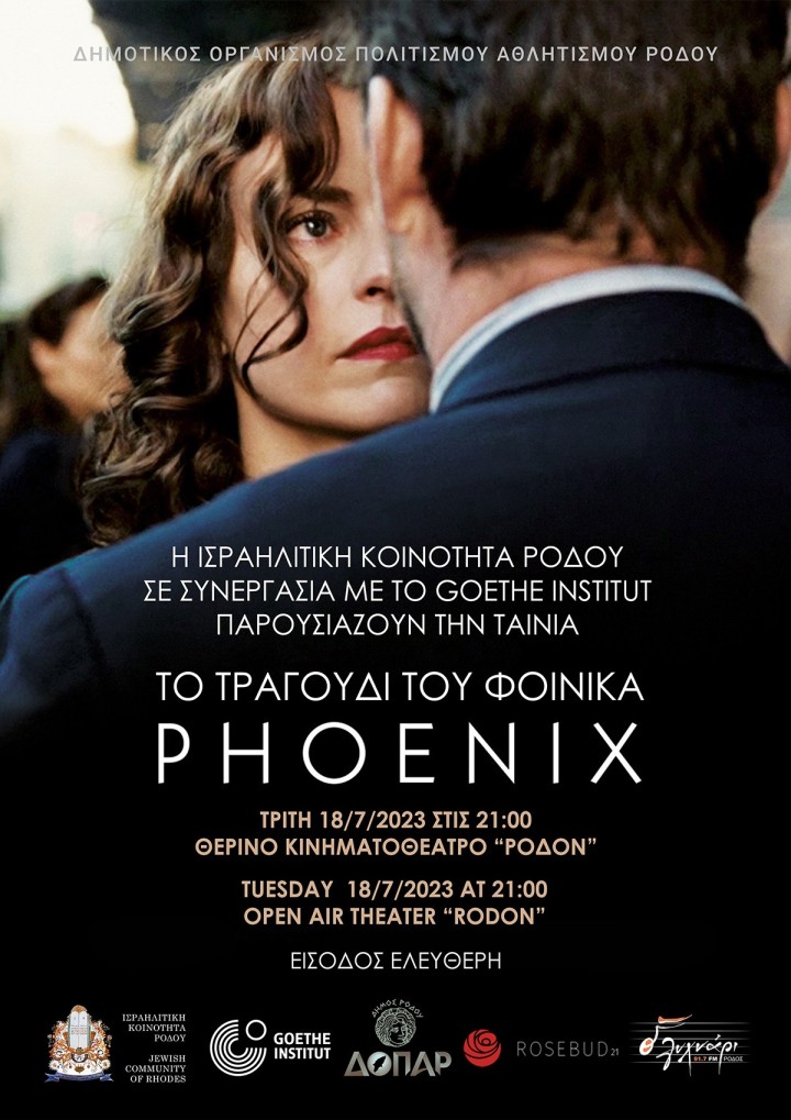 Η Ισραηλιτική Κοινότητα Ρόδου στο πλαίσιο των ετήσιων εκδηλώσεων μνήμης για τον εκτοπισμό των Εβραίων της Ρόδου και της Κω, θα προβάλει, σε συνεργασία με την Ταινιοθήκη του Goethe-Institut και με την ευγενική δωρεάν παραχώρηση από την εταιρεία διανομής Rosebud.21, την ταινία «Το Τραγούδι του Φοίνικα».