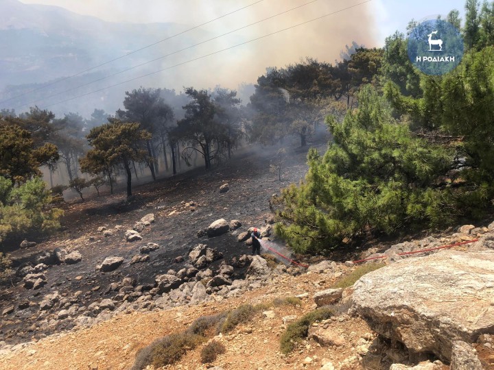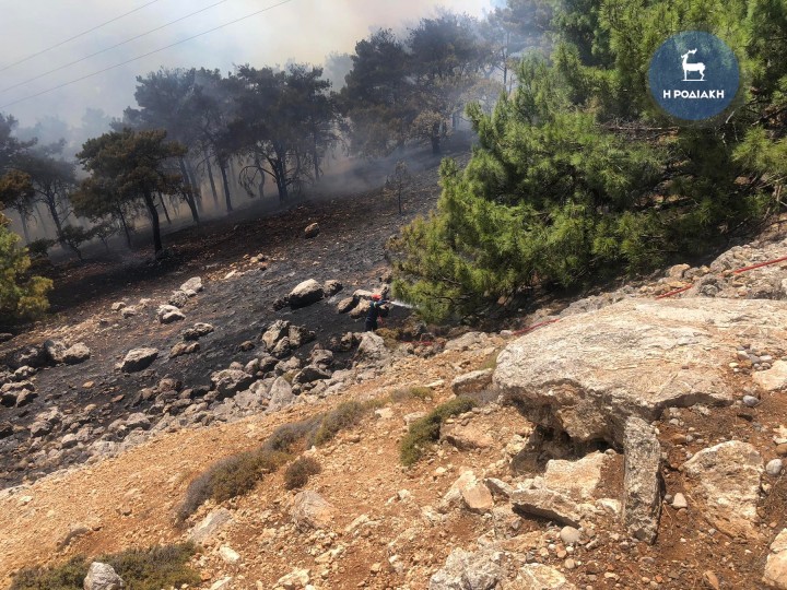 «Στη Ρόδο, αντιμετωπίζουμε αναζωπυρώσεις στον ορεινό όγκο, στο κέντρο του νησιού, και επιχειρούν 125 πυροσβέστες με 3 ομάδες πεζοπόρων τμημάτων και 35 οχήματα ενώ για την αεροπυρόσβεση έχουν διατεθεί 4 αεροσκάφη και 3 ελικόπτερα».
