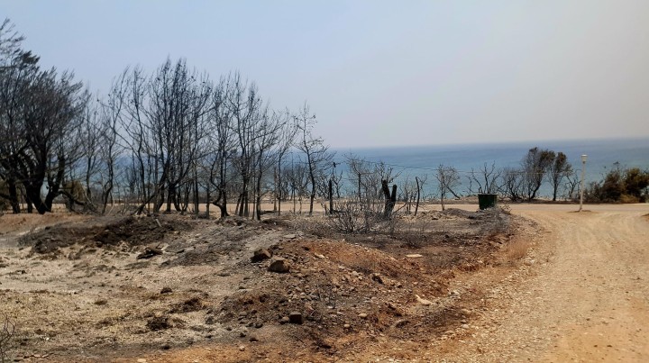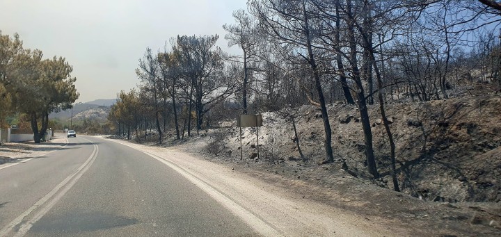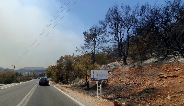Από το πρωί πολλοί εθελοντές μεταφέρουν κόσμο από τα σχολεία και τα γήπεδα μπάσκετ σε διάφορους προορισμούς...Σε μια τέτοια διαδρομή, ξεκινώντας από το 4ο ΓΕΛ Ρόδου, έφτασα μέχρι τη Λίνδο, όπου μια οικογένεια Ιρλανδών με το κοριτσάκι τους ήθελε να γυρίσει στο ξενοδοχείο και να συνεχίσει τις διακοπές του.Με την ευκαιρία αυτή πετάχτηκα μέχρι το Κιοτάρι για να ελέγξω κάποια σπίτια φίλων μου...και τράβηξα μερικές φωτό...Ένα μεγάλο ευχαριστώ στους πυροσβέστες και τους εθελοντές που έσωσαν κόσμο και περιουσίες!