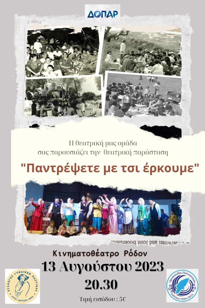 Θεατρική παράσταση: «Παντρέψετε με τσι έρκουμαι» στο κινηματοθέατρο "Ρόδον"
