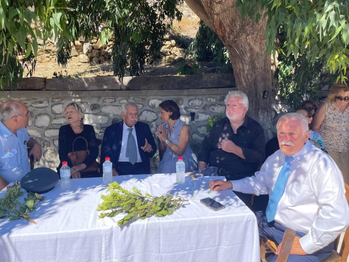 Τα πέντε τέκνα του αείμνηστου ήρωα του Δωδεκανησιακού Αντιαποικιοκρατικού Αγώνα δασκάλου Γεωργίου Βασ. Χαλκιά παρέθεσαν καταληκτικά δεξίωση προς όλους τους παρευρεθέντες.