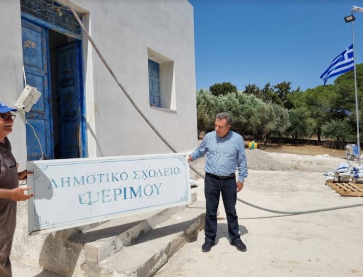 Το δημοτικό σχολείο στην Ψέριμο ανοίγει και πάλι μετά από 14 χρόνια, αφού πρώτα έγιναν εκτεταμένες επισκευές με δωρεές Ελλήνων της διασποράς.