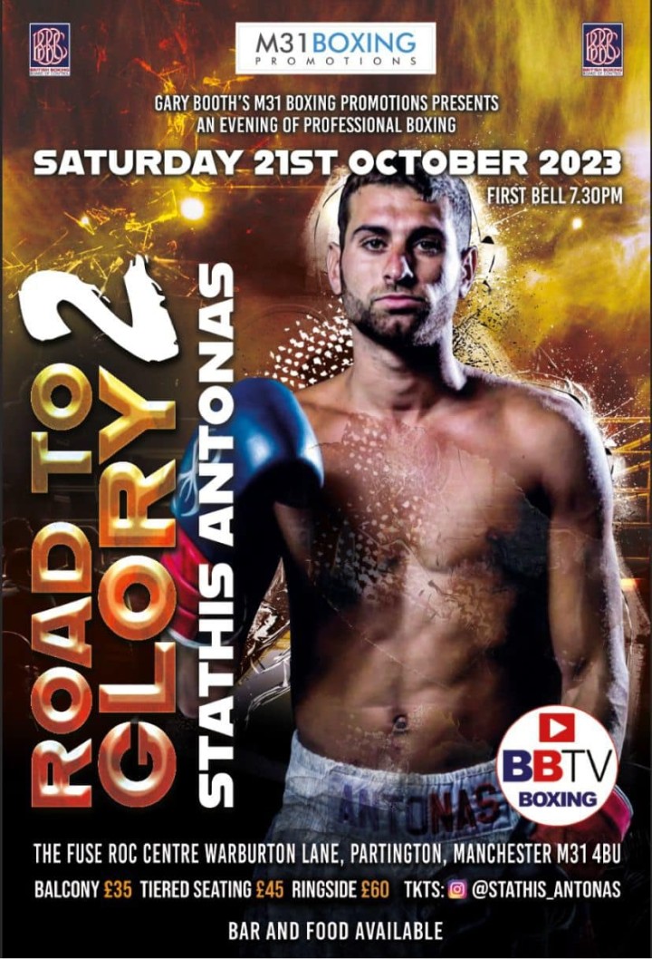 Θέλοντας να συνεχίσει τις εξαιρετικές του εμφανίσεις στην επαγγελματική πυγμαχία, ο Στάθης Αντωνάς θα δώσει έναν ακόμη αγώνα στις 21 Οκτωβρίου στο Πάρτινγκτον του Μάντσεστερ.