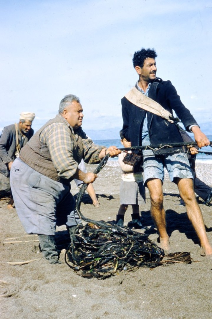 Η πεζότρατα του Χουσείνη έριχνε τα δίκτυα ανοιχτά του κόλπου και είχε πέντε σημαδούρες. Δύο σε κάθε σχοινί και όταν έφτανε η πέμπτη, ήταν ένα ψιλό δίκτυ με τα αφρόψαρα (κυρίως γόπες, μαρίδες και αθερινό) μαζί με φύκια ,αλλά υπήρχαν πάντα και "πρώτα" ψάρια (μπαρμπούνια, λιθρίνια, κουτσομούρες,σαργοί κ.α) που έμπαιναν στη "μπάντα" για να τα πουλήσει ο Χουσείνης σε ταβέρνες με ακριβότερη φυσικά τιμή από τα άλλα ψάρια.